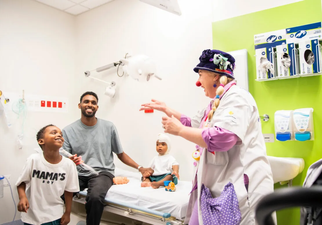 Kids receiving burn treatment will experience an extra day of care from Clown Doctors Australia, helping transform clinical moments into experiences of courage, play and connection thanks to funding from Children’s Hospital Foundation.